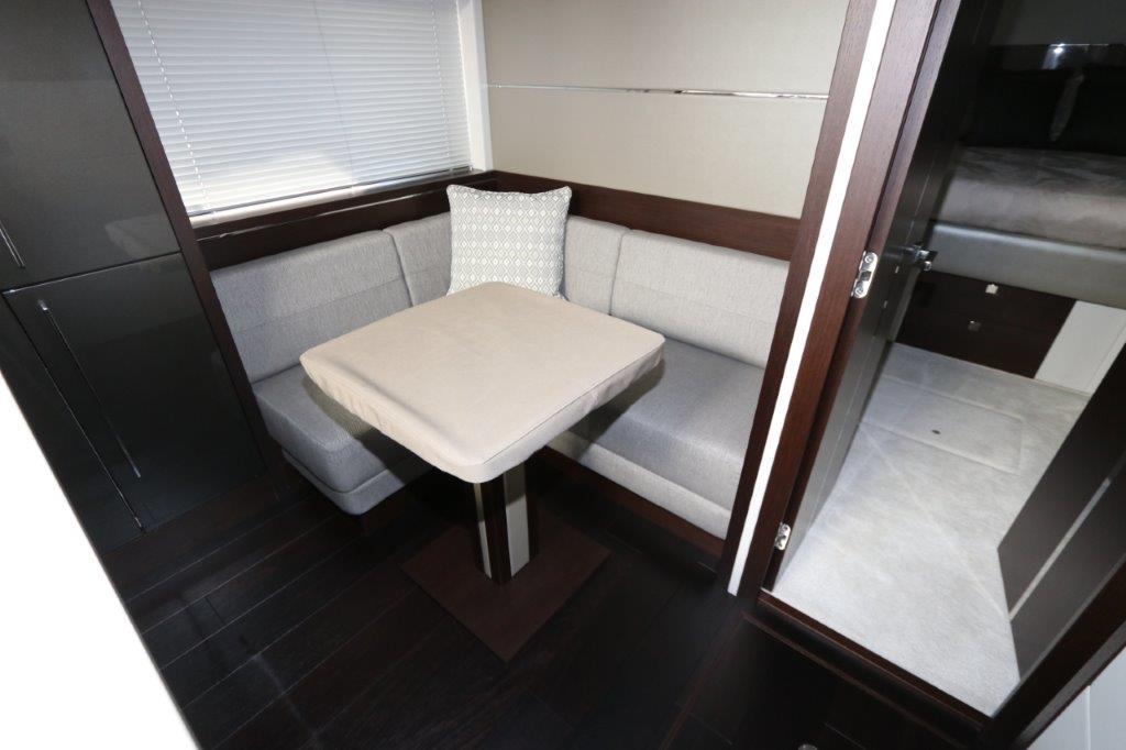 Inside, the generous saloon proves to be the perfect spot for entertaining, with a sumptuous seating area, ample storage and comprehensive port-side bar console; all below an extraordinary panoramic glass sliding roof.