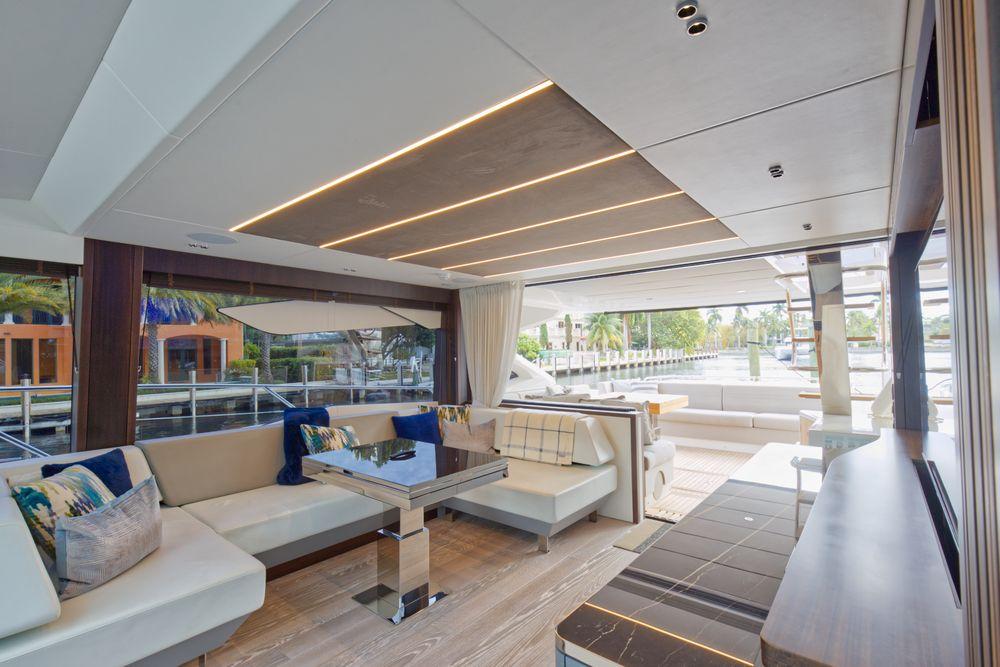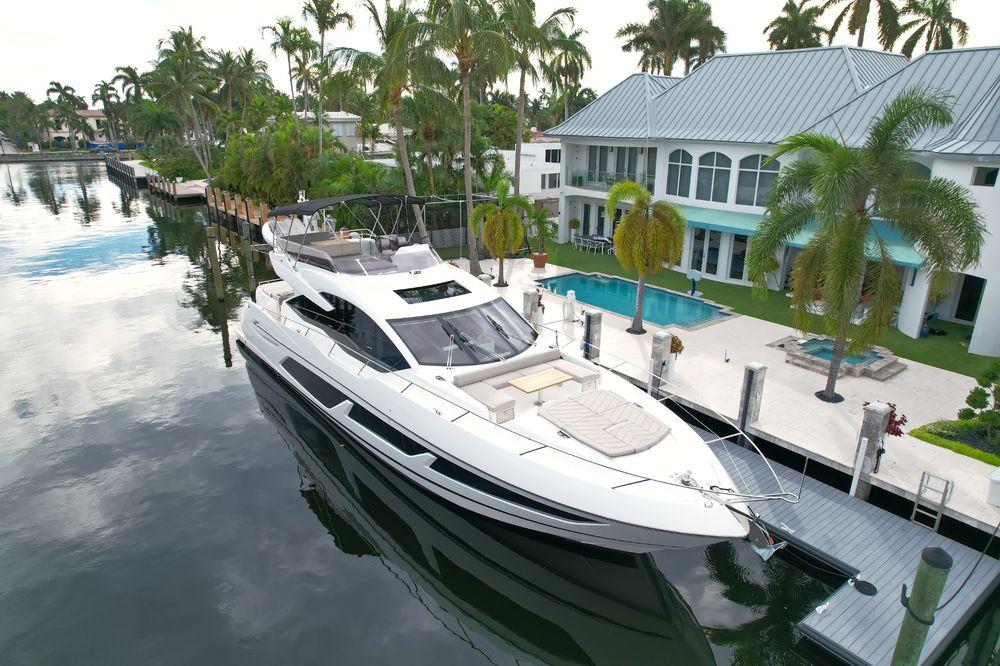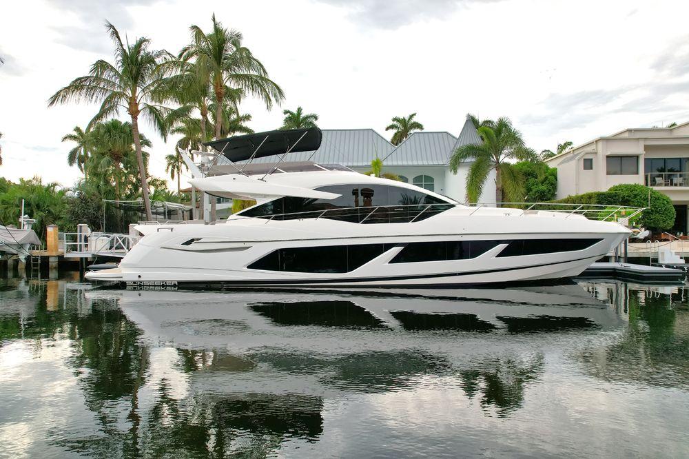2022 74' Sunseeker Sport Yacht - a modern 74’ Sunseeker Sport Yacht featuring the very best upgraded V-New 12 cylinder 1900 HP Common Rail MAN Diesels. This 74’ Sunseeker was customized with a warm and inviting interior featuring carbon fiber detailing with the sleek styling of an express and the functionality of a bridge yacht.