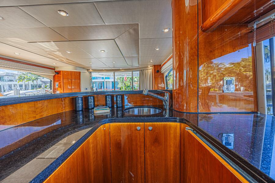 Up top, the seller went above and beyond with a custom flybridge grill (24" Kenyon grill) and entertaining bar (2 Sub Zero fridges), plus extended bimini fabric for extra shade and comfort — thoughtful touches you simply won’t find on any comp. Everywhere you look, this yacht shows pride of ownership, ease of use and comfort for longer trips and hosting!