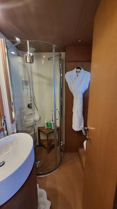 room are the two crew cabins. Each crew cabin has two bunks. The interior is in excellent condition and still shows like a new yacht.