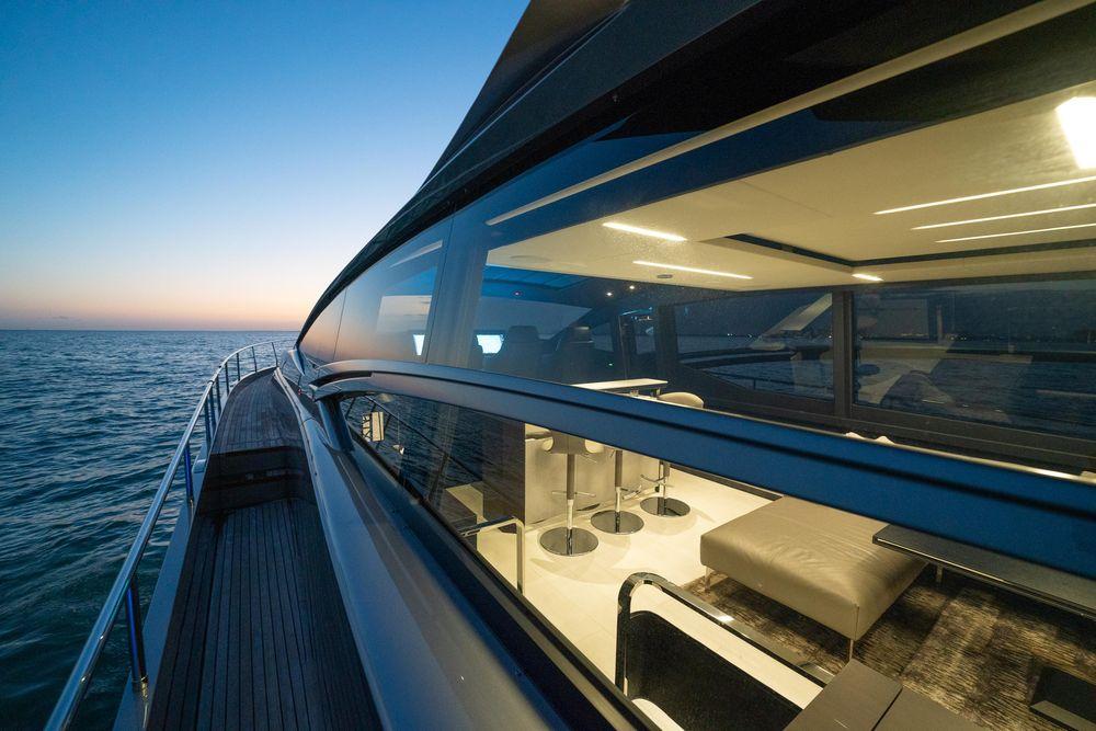 The carbon fibre revolution. The umpteenth leap forward in Pershing style, each and every component designed to amaze, starting with the construction material. Lightweight, fast, hyper-performing, with the most spacious, welcoming spaces and a new propulsion system, the Pershing 8X is the dream and masterpiece of the “X Generation”.