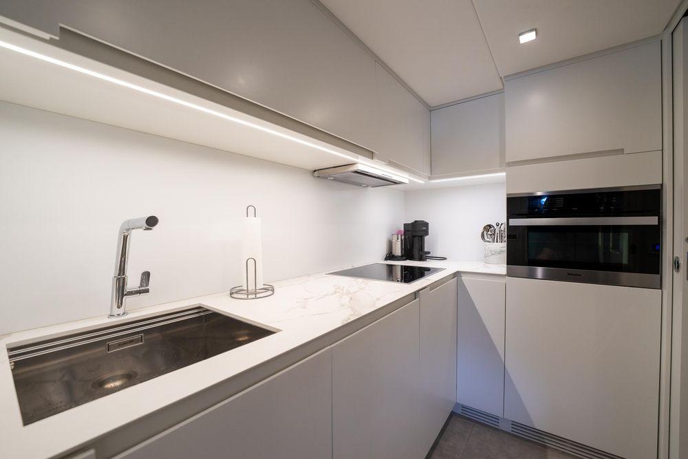 The unrivalled combination of quality and innovation creates spaces which are exceptional in terms of both aesthetics and functionality. With dual side access, the main deck ensures intimacy and privacy. The helm station is a masterpiece of design, technology and sportiness. The innovative Music Hull system allows music to be listened to underwater, with high audio quality.