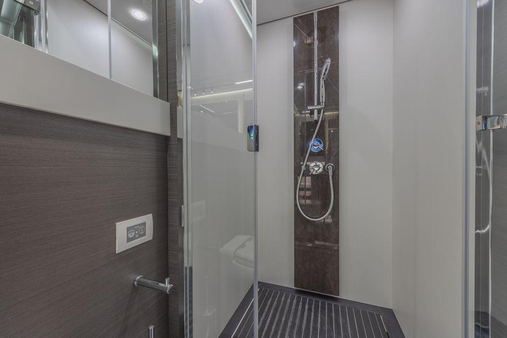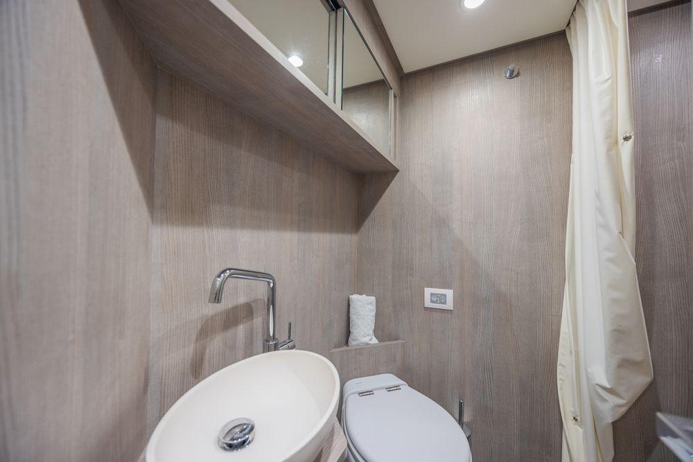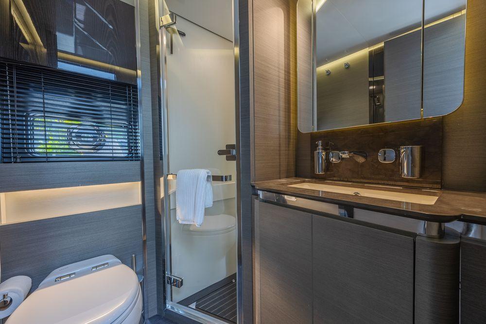 Accommodations include Four luxuriously appointed staterooms and Four heads. The full beam master is exquisite and the VIP & guest staterooms will provide your guests with a welcome respite after a great day on the water. The generously sized crew quarters include Captain’s quarters and a two-berth crew cabin.