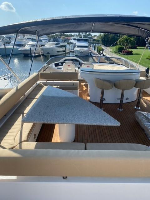 Plenty of natural light to illuminate the voluminous salon, dining and separate seating areas. Exterior spaces abound, the spacious flybridge offers a wetbar w/barstools, icemaker, BBQ, & panoramic views. The foredeck features comfortable sun pads & seating while the aft deck is perfect for al fresco dining. Powered by the preferred Twin CAT C32 engines at 1675 Hp each which will ensure reliable performance and an exhilarating cruise up to 32 knots. The aft cockpit control station is a great feature to make docking a breeze.