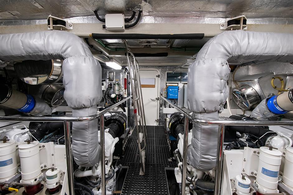 - Electric winch & capstan w/deck, cockpit & flybridge controls