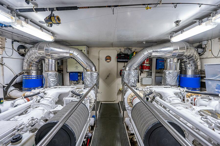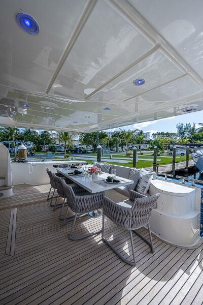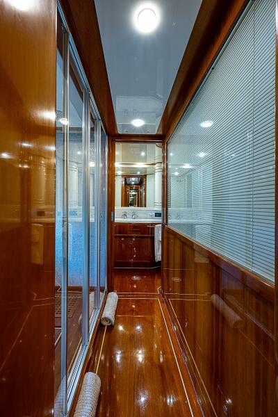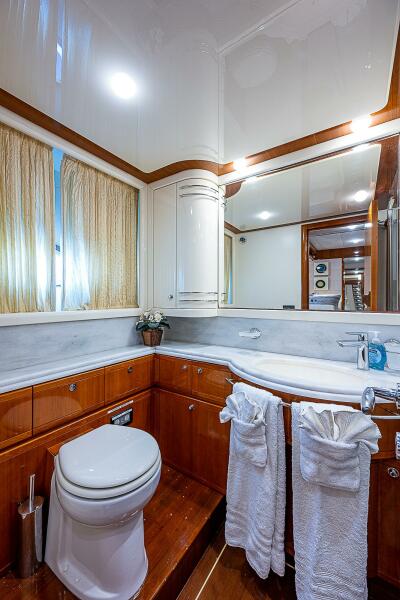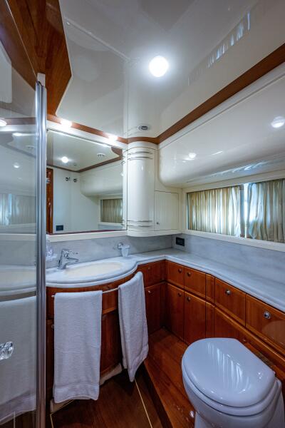 Four staterooms for owner and guests, each with ensuite heads, and 2 staterooms for crew with one head. Spacious aft deck and flybridge areas, custom Cabana area in transom/swim platform area, large sun pad area on the foredeck with walkaround decks.
