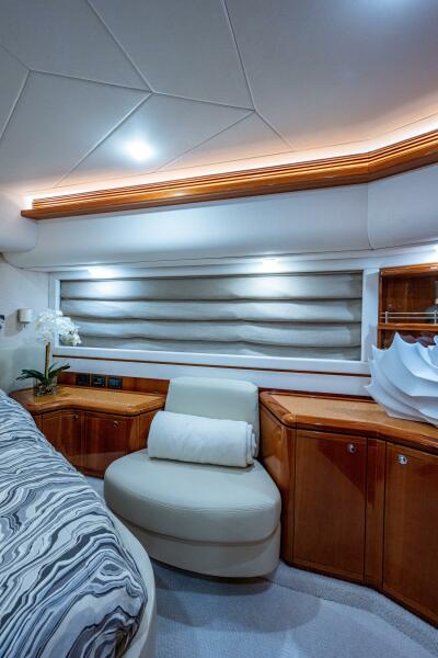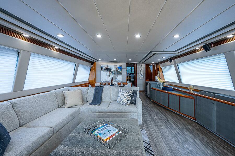 - New Interior Furnishings including Flooring, Wall Coverings, Cabinetry, Headliners, Custom Remodeling (Closure) inside of Hatch to the Flybridge to accommodate Custom Bar Area, New Soft Goods, New Window Treatments, New Tables, Countertops, TVs, and Stereos