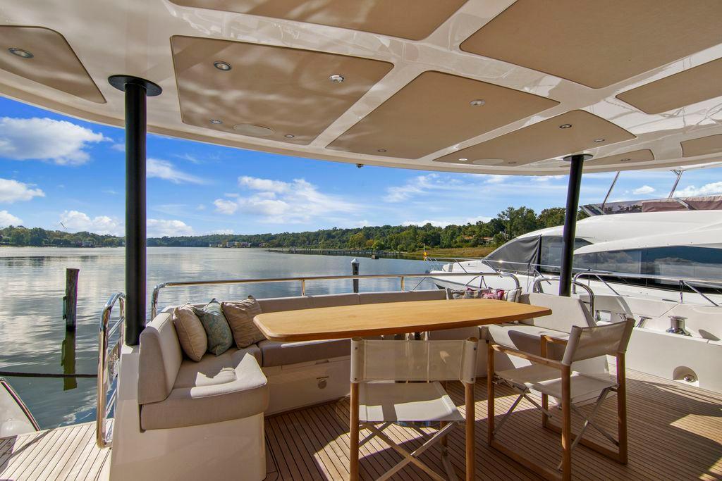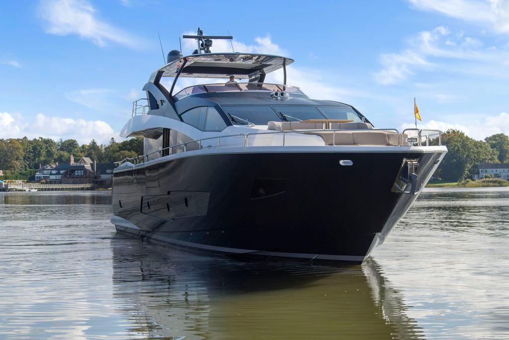 One of a kind custom built 2019 Sunseeker 86. Custom exterior colors, carbon fiber hard top plus carbon wraps throughout gives this Sunseeker 86 a sleek appearance where ever she goes. Owners imported custom fabrics, lighting and accessories to make this 86 one of a kind.
