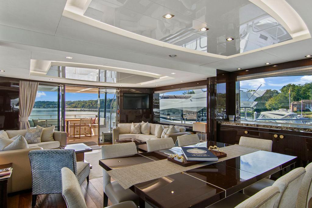 Attention to detail from bow to stern is evident in the handsome 86 Sunseeker. An abundance of interior natural light, American Walnut Satin Finish flooring w/ Gloss Finish wenge joinery, four extravagant en suite staterooms and thoughtfully arranged entertainment venues make this a premier example of Sunseeker design.