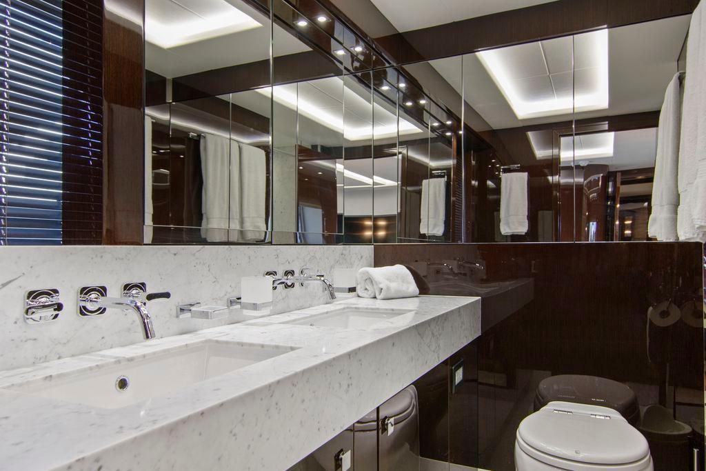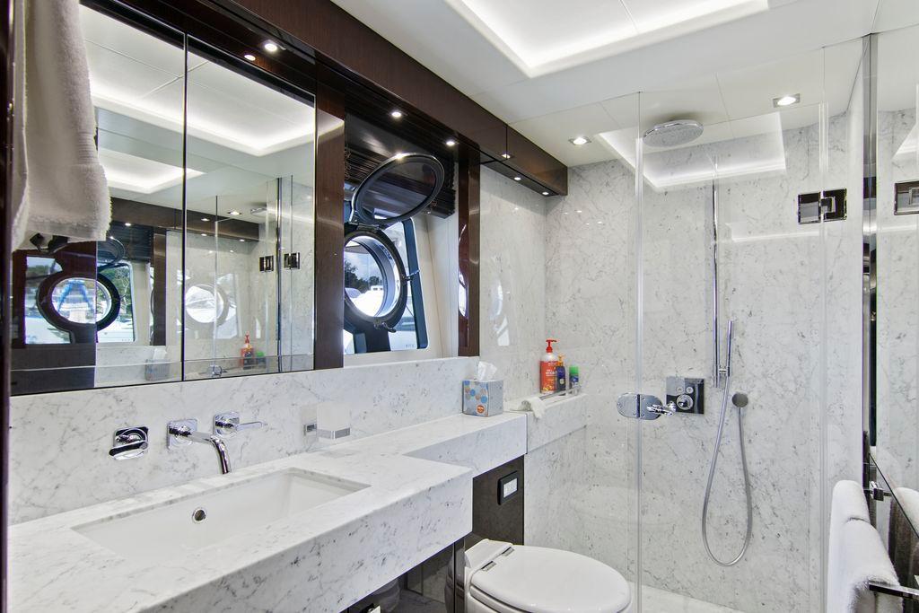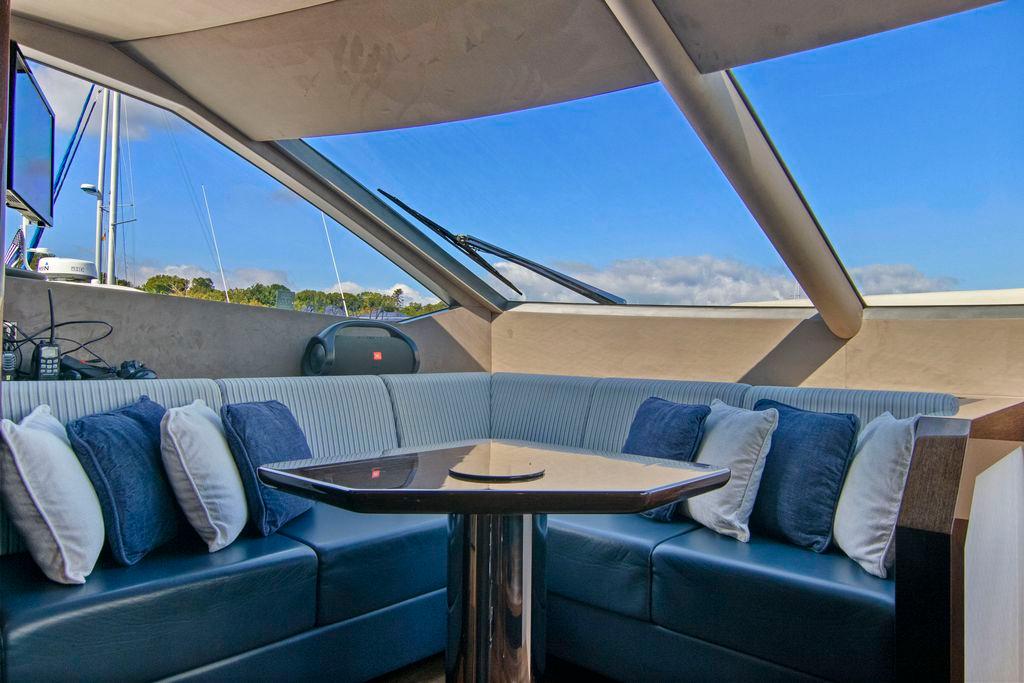 Yet, there’s more to this yacht than just cosmetics. With her twin MTU 12V's @1950 hp each giving a top speed of approximately 30 knots, guests will enjoy an exhilarating open-air ride from the flybridge or enjoy a nautical landscape from seating areas both fore and aft.