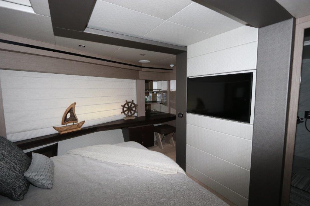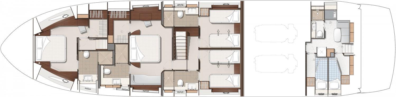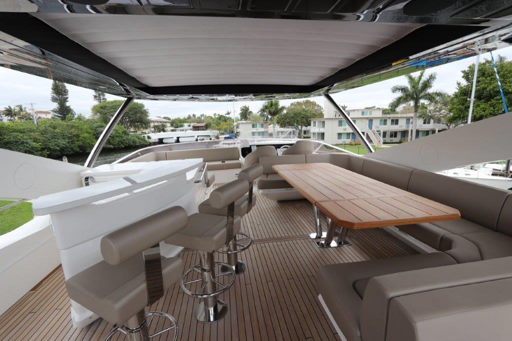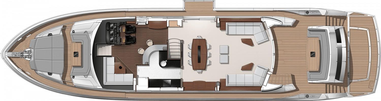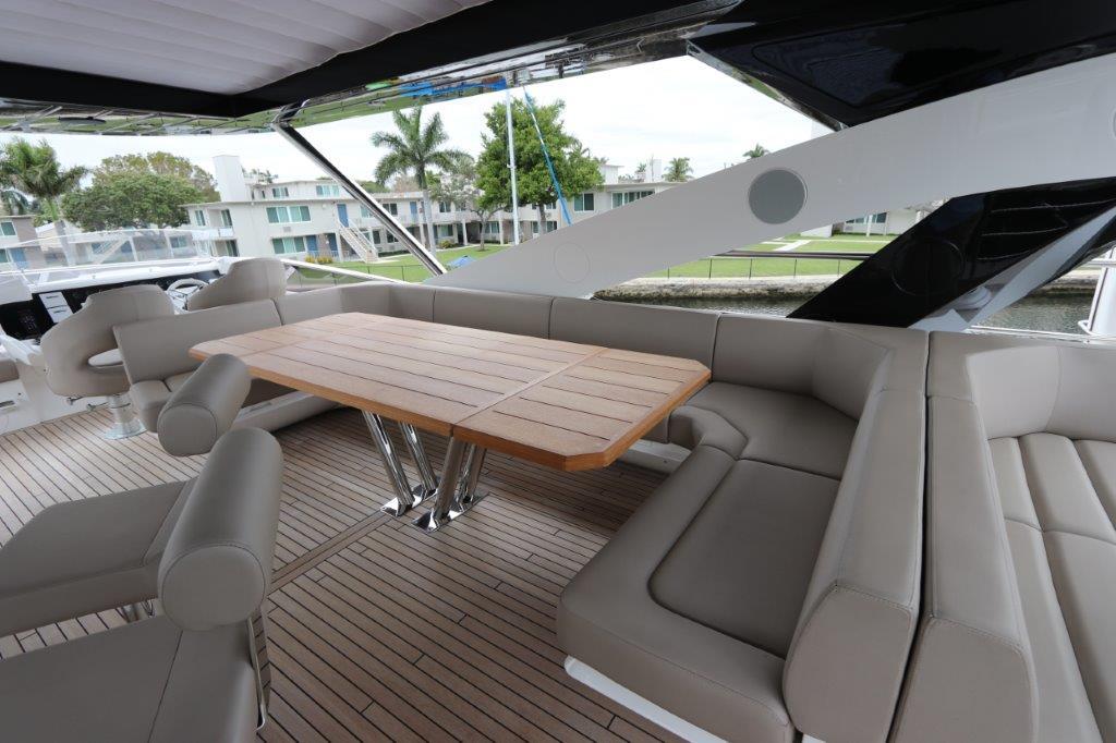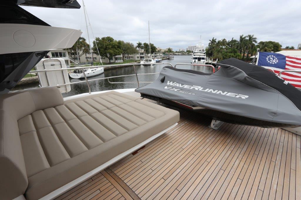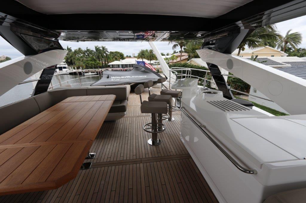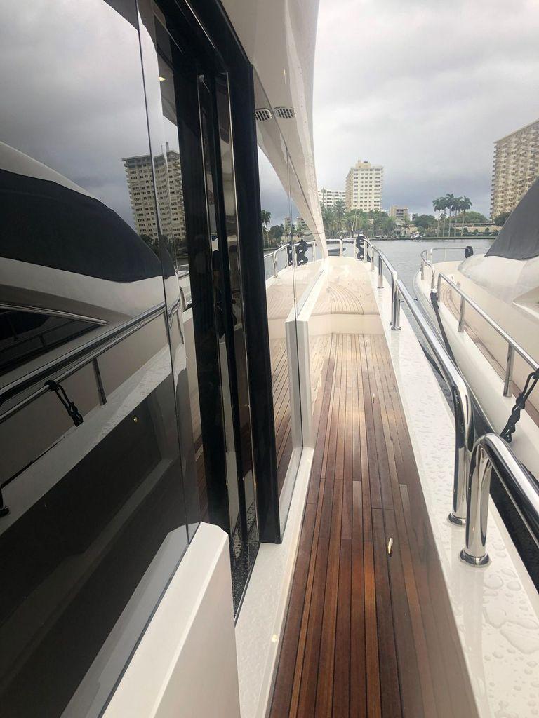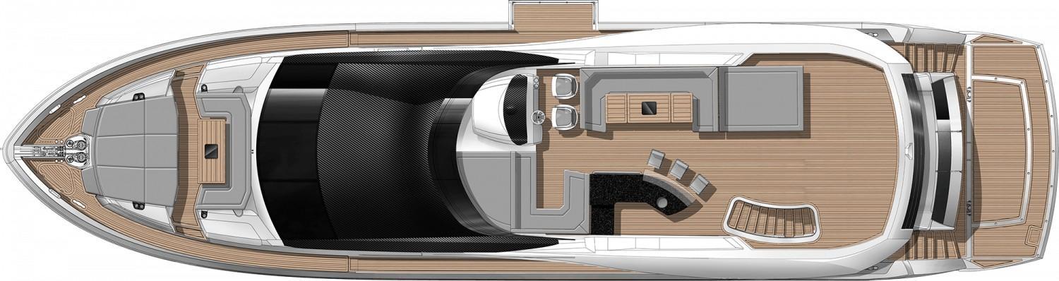 - Teak Decking: Fore Deck, Side Deck, Aft Deck, Swim Platform, Fly Bridge