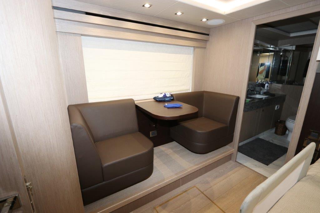 Yet, there’s more to this yacht than just cosmetics. With her twin MTU 12V's @1950 hp each giving a top speed of approximately 30 knots, guests will enjoy an exhilarating open-air ride from the flybridge or enjoy a nautical landscape from seating areas both fore and aft.