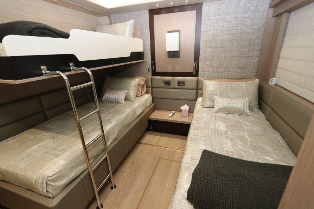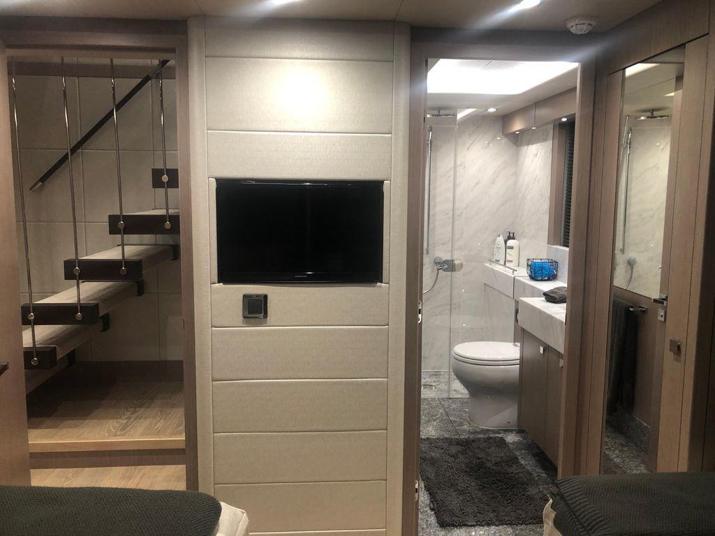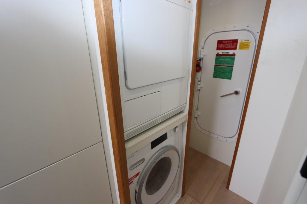 - Crew Lounge w/Miele Washer & Dryer, Waeco Refrigerator, Whirlpool Microwave, 24'' TV w/Fusion DVD/CD/Radio