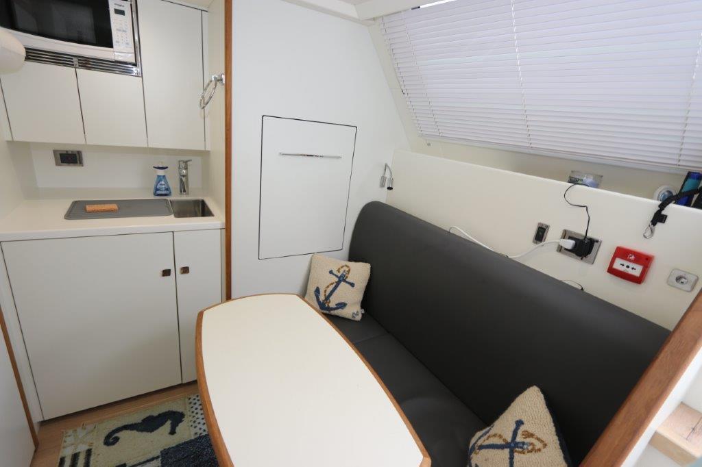 - Wenge shelving and cabinets-port & starboard outboard bulkheads