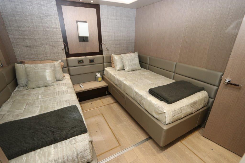 - Teak Decking: Fore Deck, Side Deck, Aft Deck, Swim Platform, Fly Bridge