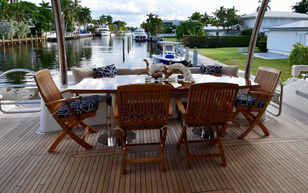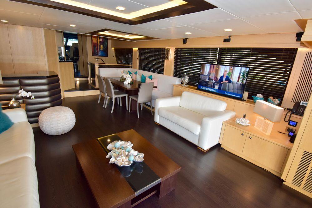 Comfortable accommodations with 4 en suite staterooms plus crew, a fantastic fly bridge as well as many exterior areas for any activity and reliable twin Caterpillar C-32 Acerts for power.